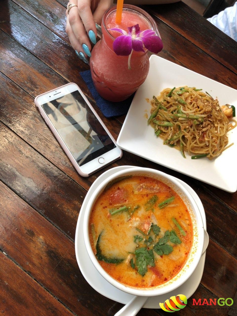 Здравствуйте !:) Только вернулись из Комбинированного тура Пхукет+Као Лак. Все хорошо, вот только на Пхукете Бауманкаса отель был мягко сказать совсем не на 3. наверное его бы я не посоветовала знакомым. Ну да ладно это не главное, на Као лаке отель шикарный !!!Называется Манатай Као лак 5 звезд. Там кафешки были в метрах 700, мы гуляли и там кушали, а больше нам ничего и не нужно было, Спокойный Релакс там , Но Точно не для тусовых ребят ))) Очень мало русских , Пары 2 были ещё в нашем отеле и все , Территория классная у отеля . Завтраки тоже отличные! Спасибо турагентству Манго и менеджеру Владе за работу.