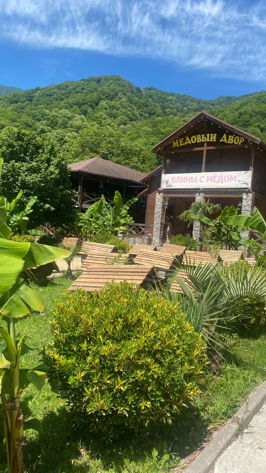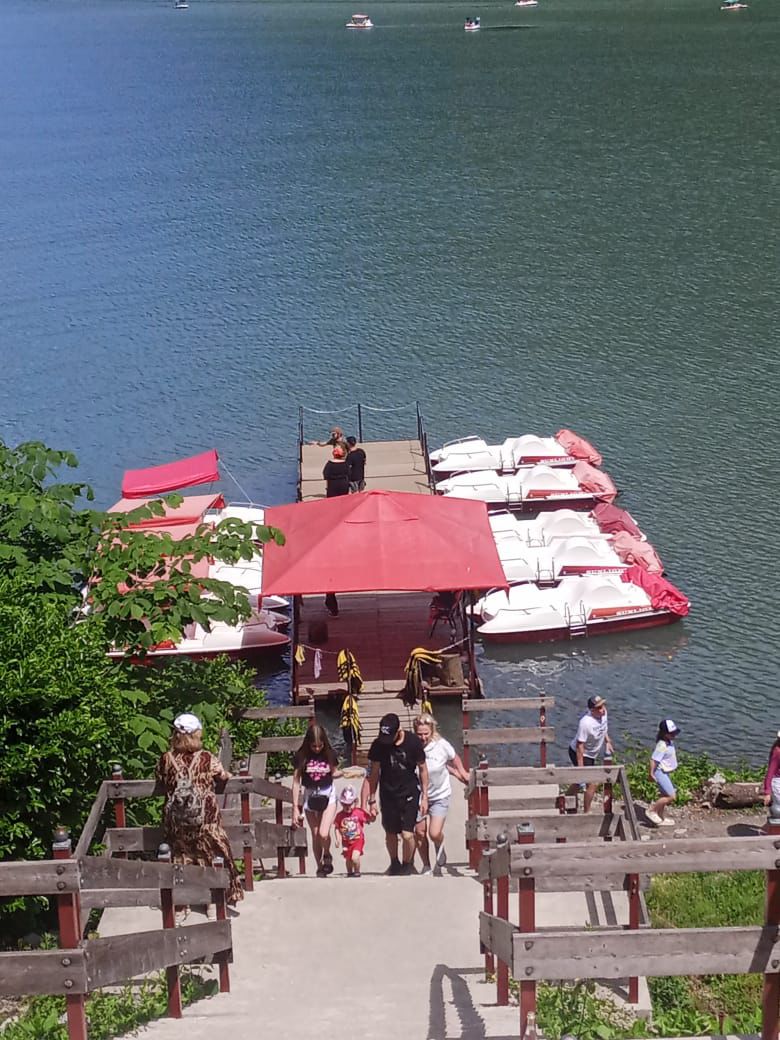 Ходили на экскурсию на озеро Рица, были на водопаде девичьи слезы, была дегустация вина сыров, также посетили пчеловодство.