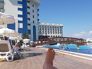 Добрый день.Прилетели с отдыха.Отель неплохой, нам понравился ,хотя конечно до четырёх звёзд он очень не дотягивает.В целом из-за питания и отсутствия дополнительных минимальных удобств.Если они свои все эти минусы улучшит ,то прям вообще будет супер супер:))Территория шикарная для детей,просмотр кино на улице, Две игровые площадки по возрасту, бассейн, все зелено ,ну вообще супер, конечно куча камер :))На пляже энергетик навесные беседки, там можно за 40 руб. в час взять лежак ,чем больше часов ,тем дешевле соответственно .Он под навесом закрыт от солнца, нам было очень удобно с ребёнком -он спал там в коляске, а мы сверху смотрели как плавает ребёнок старший с боков лестницы к морю.Вот там море чистое, хотя в целом говорят, что есть ещё и и сосновка ,но она на удалении и с ребёнком туда проблематично, потому что идёт огромная длинная лестница.В общем,вам спасибо,за наш отдых!