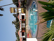 Отдыхали с мужем в середине июля в Адлере. Отдых выдался великолепным! Погода стояла отличная 28-29 градусов, волна 27-28, очень теплая)) накупались, наелись фруктов и местных сладостей. Все кафе работают, обошли их все в округе, вечером есть где потанцевать рядом с отелем) Брали экскурсию в горы,очень советую. В Сочи гуляли сами, такси, если надо, дешевое. Остановились в отеле Эллас 2*. Отель выбрали не дорогой и многого не ждали от негою Но оказался гораздо лучше, чем мы предполагали. Чисто, в номере есть все необходимое. В столовой выбор не большой, но еда вкусная. Во дворе есть столики и мангал, можно что-то пожарить самостоятельно или просто посидеть поиграть в настольные игры. Находится на улице Просвещения, на первой линии, до моря пару минут). В общем остались очень довольны отдыхом, спасибо огромное Манго, особенно менеджеру Галине за подбор тура, мы хотели другой отель, но она уговорила на этот и сказала брать с балконом. Приехав туда мы поняли, что это действительно лучший вариант, чем тот, что мы хотели изначально. Будем летать с Манго и дальше)