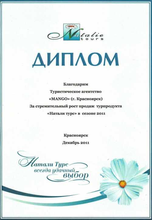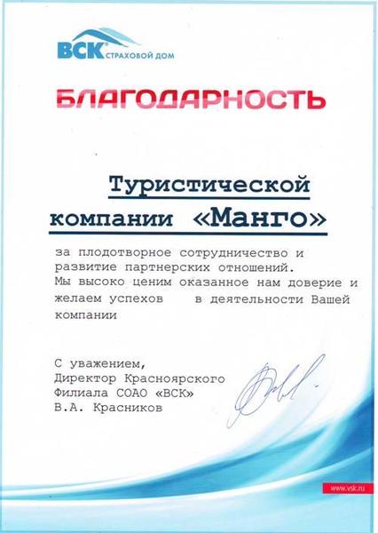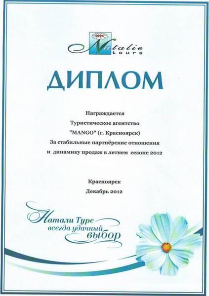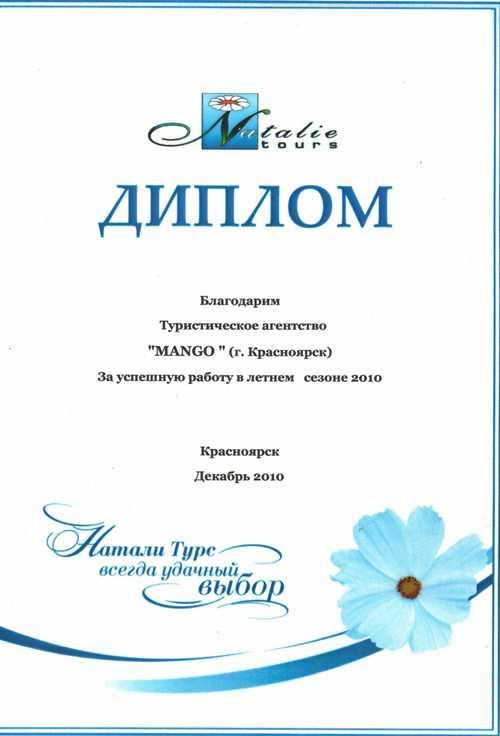 Компания MANGO, основанная в 2009 году, с 2013 года входит в ТОП 10 Лидирующих туристических компаний Красноярского края. Вы смело можете доверить Ваш отдых в наши надежные руки!